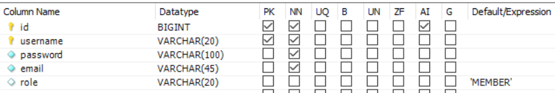 해결 : USERINFO테이블의 기본키를 id와 username 두 개를 설정하여 해결했다. (id를 해제하려했으나 Auto Increment는 PK가 적용된 컬럼만 된다고 한다.)