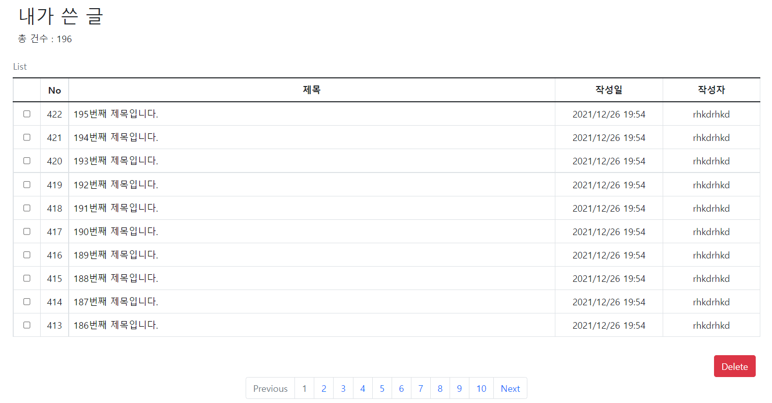 - Common : 메인 게시판, 내 글 관리, 휴지통 등 컨텐츠를 보여줄 때 아래 페이지 처리를 해야하는데 이 때 사용