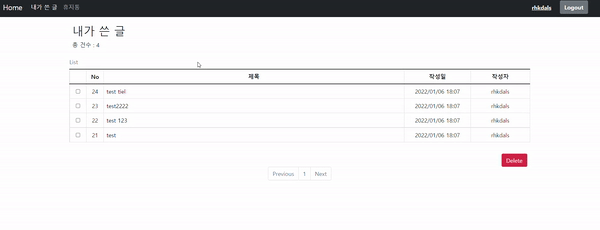 - 제목이나 내용이 없을 경우 경고 팝업을 띄워주고, 해당 input 또는 textarea의 class에 is-invalid를 추가해줍니다. (bootstrap을 이용해 빨간 input칸으로 변화)
